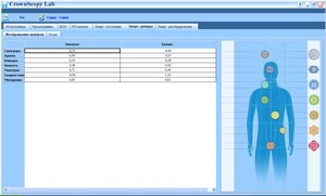 - энергетическое распределение по органам и системам (здесь оценивается общее состояние систем организма: нервной, эндокринной, сердечно-сосудистой, уро-генитальной, пищеварительной, опорно-двигательной, дыхательной и лимфатической, а также распределение энергетики по органам в каждой из систем); |